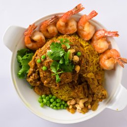 A steam table grab-and-go joint, but so much better than the likes of Panda Express! Granted, there were definitely some Chinese-American looking dishes. I stuck with the distinctively Burmese choices and was quite satisfied. Samosa: The filling of an Indian samosa, but the thin crispy dough of a Thai spring roll. I was a fan. Actually prefer the lighter encasement. The dipping sauce had a nice vinegary tang. Burmese Indian Rice: Definitely worth the upgrade. Fluffy rice with nice spices. Way more exciting than some boring brown rice. Chicken Kebat: Very generous portion of chicken. Looks spicy, but quite mild. Loved all the big onion slices for a nice tang. The tomato slices were just ok; they weren't very juicy or tender. Pork Curry: I can never seem to find pork curry at Pakistani or Indian curry houses, so always happy to have some at a Burmese restaurant. Another generous portion. Very tender. So many nice spices. This went great with that Burmese Indian Rice.